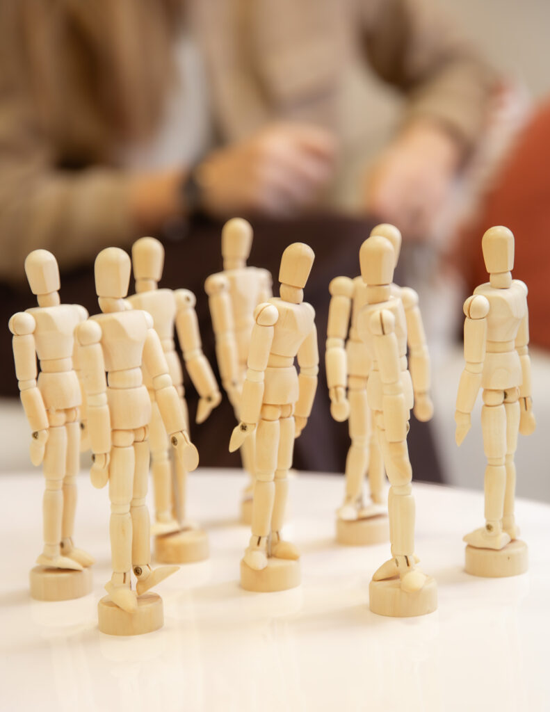 Szimbólumokkal, bábukkal, térbeli jelölésekkel vagy vizualizációval jól működik online is.Személyes jelenlétet igényel• Csoportos család- és rendszerállítás